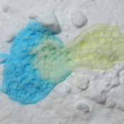 Squirt shaving cream into a cup of water. Drip food coloring onto the shaving cream. What happens? more...